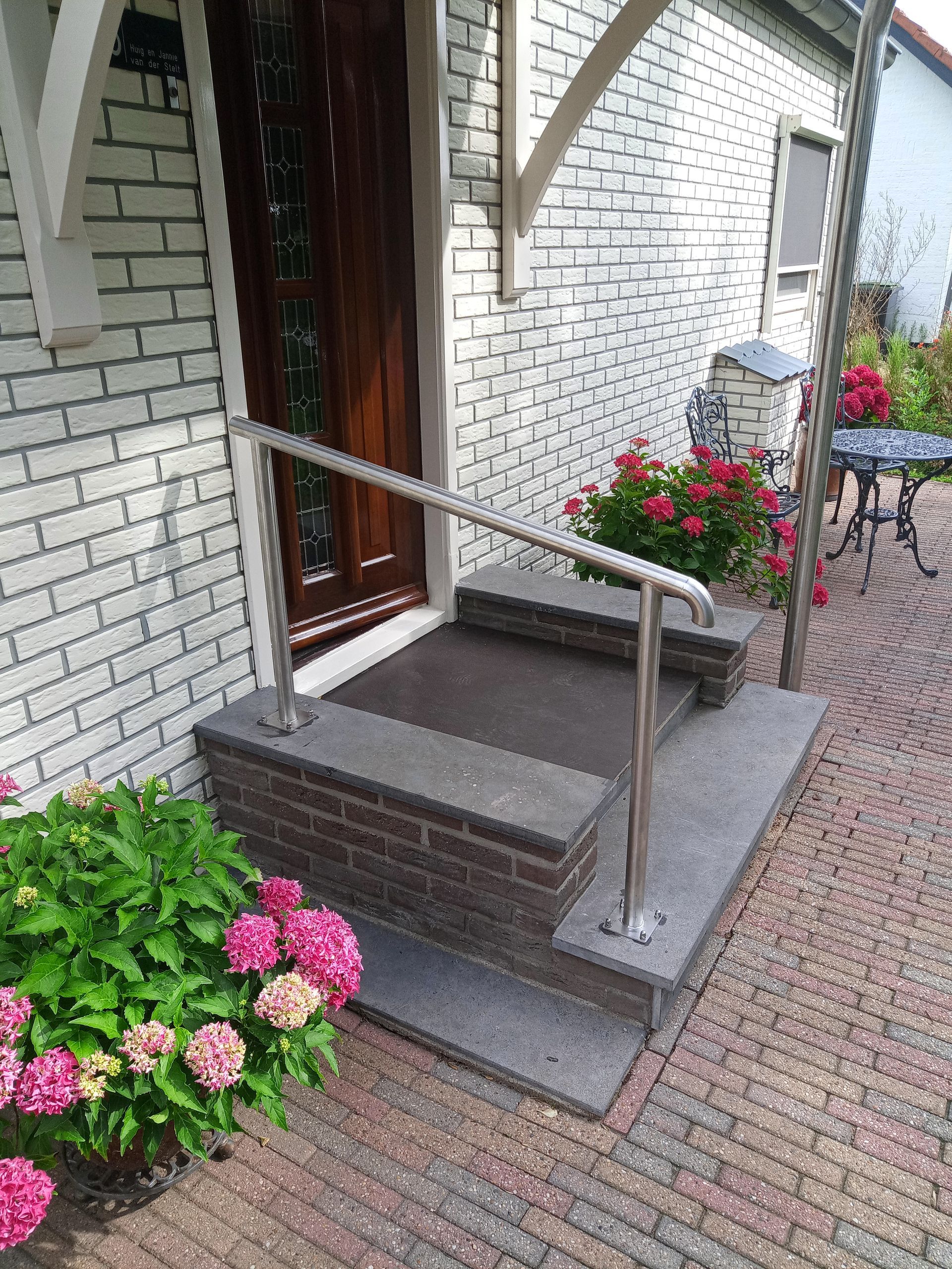 Voor dit project hebben we een leuning op maat ontworpen en uitgevoerd. Deze mensen zijn slecht te been en wilde graag een makkelijkere opstap hebben.